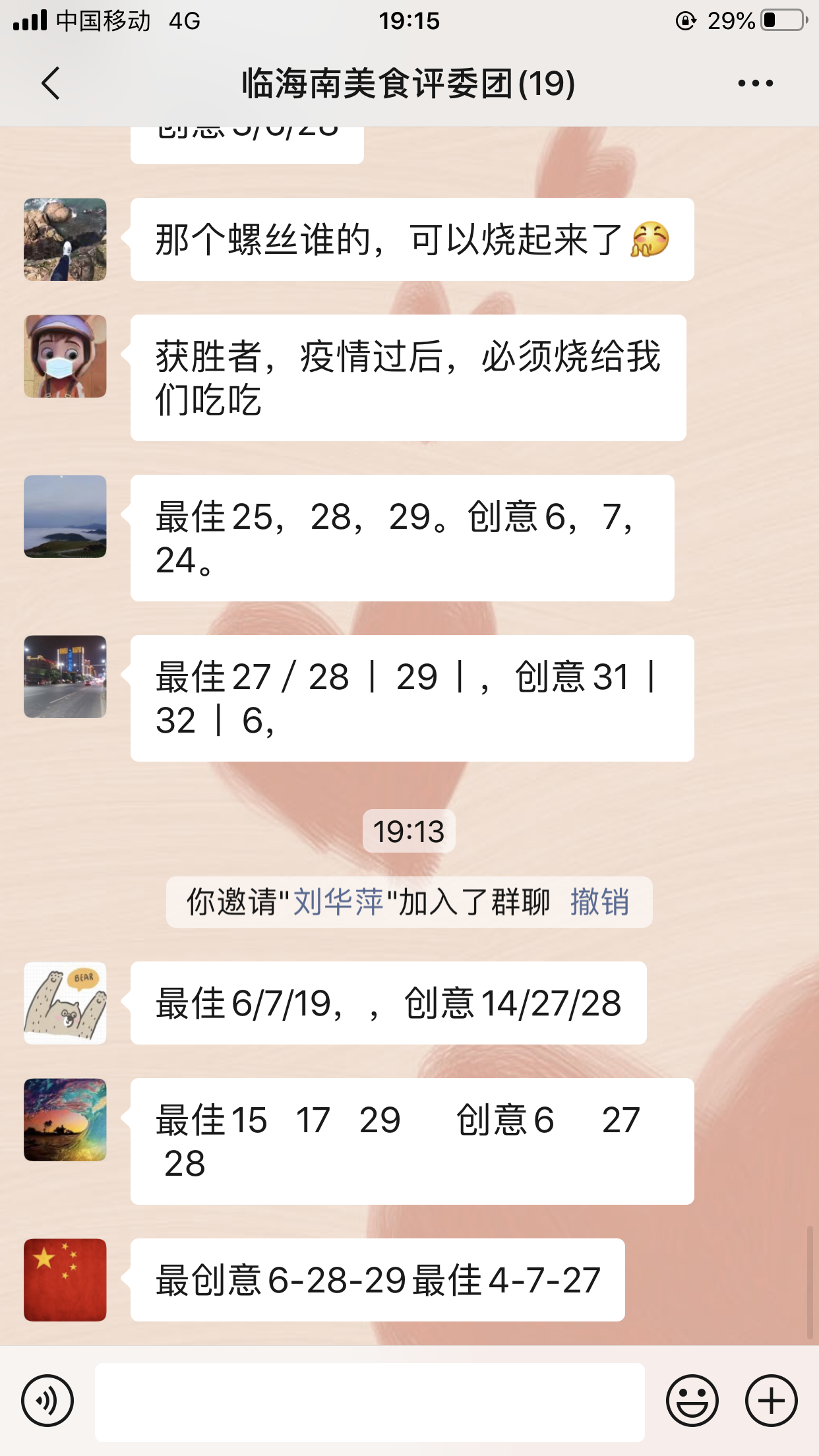 以廚會友、以食為樂 ——臨海南收費所《抗擊疫情、巧手曬美食》線上廚藝大比拼 今年的“三·八”婦女節在全國上下全力抗擊新冠肺炎疫情的緊要關頭悄然來臨,為最大限度減少傳播風險,3月13日,臨海南收費所開展了《抗擊疫情、巧手曬美食》線上廚藝大比拼活動,一展巾幗風采。 此次廚藝大比拼采取“居家制作,微信群曬美食,投票評比”的方式進行,首先由女職工們提前準備食材,將自己制作完成的美食成品以圖片形式發送到微信群中,最后由14位男職工組成的評委團,通過“色、形、難易程度”三個方面進行投票評比。