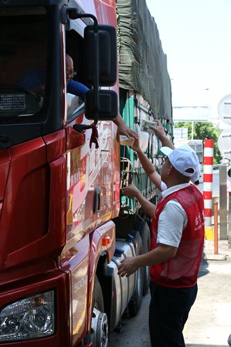 持續的熱浪高溫,給行駛在高速公路上的車輛帶來極大的安全隱患。 8月6日,臺州收費所組織志愿者開展“炎暑酷夏送清涼,絲絲關愛促平安”為主題的送清涼活動,為出行在外的司乘人員們送去一絲清涼,緩解旅途中的枯燥和勞累。