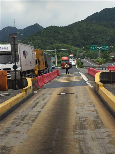 已入三伏天,熱浪席卷大地,透藍的天懸著火球般的太陽炙烤著大地。 8:30,正是交接班時間,由于四號崗亭路面正在施工,無法使用,面對這經常出現的大流量,出口承受著巨大的壓力,稍有狀況,就會出現嚴重的擁堵現象。班長李寧一邊提醒大家一定要加快收費速度,自己一邊一直站在一號崗亭外面,關注著各個車道可能出現的突發情況。收費員蔣弓則奔走于5號車道和ETC車道之間,處理著隨時而來的誤闖車和黑名單車輛。所有的機動人員、行政人員已全部到崗待命。