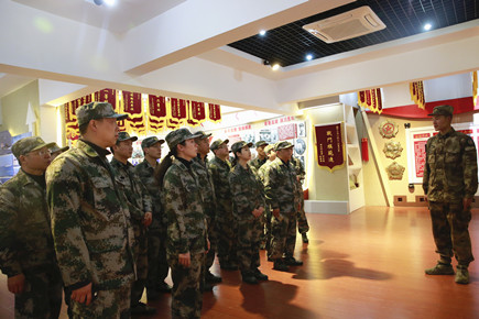 圖為黨員干部在參觀展覽 大家在“硬骨頭六連”官兵的指引下參觀了連隊(duì)廣場(chǎng)、車場(chǎng)、展覽館、將帥廳等,觀看戰(zhàn)場(chǎng)模擬演練紀(jì)錄片,聽指導(dǎo)員講專題黨課,深入了解該連的組建誕生、浴血戰(zhàn)斗歷程,感受豐功偉績(jī)下的“硬骨頭精神”。