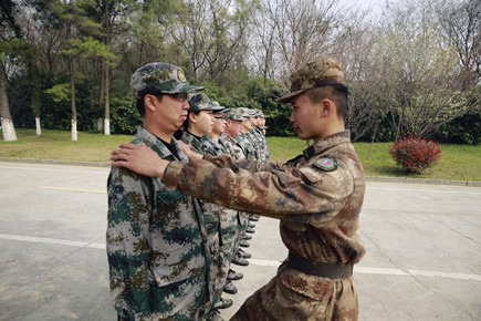 圖為黨員干部在觀看隊(duì)列表演 六連廣場(chǎng),到處可見訓(xùn)練士兵挺拔的身姿、整齊的步伐,聽到洪亮的口號(hào)聲,整個(gè)充滿了朝氣、正氣。全體黨員干部在現(xiàn)場(chǎng)觀摩了六連士兵隊(duì)列表演,并分組進(jìn)行隊(duì)列訓(xùn)練。大家在教官的指導(dǎo)下,個(gè)個(gè)昂首挺胸,精神抖擻,站軍姿、行軍禮、邁步走、起步跑……努力讓自己的動(dòng)作規(guī)范,做到與團(tuán)隊(duì)保持一致整齊。