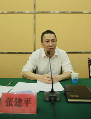 圖為公司黨委副書記、總經理張建平在會上作動員講話