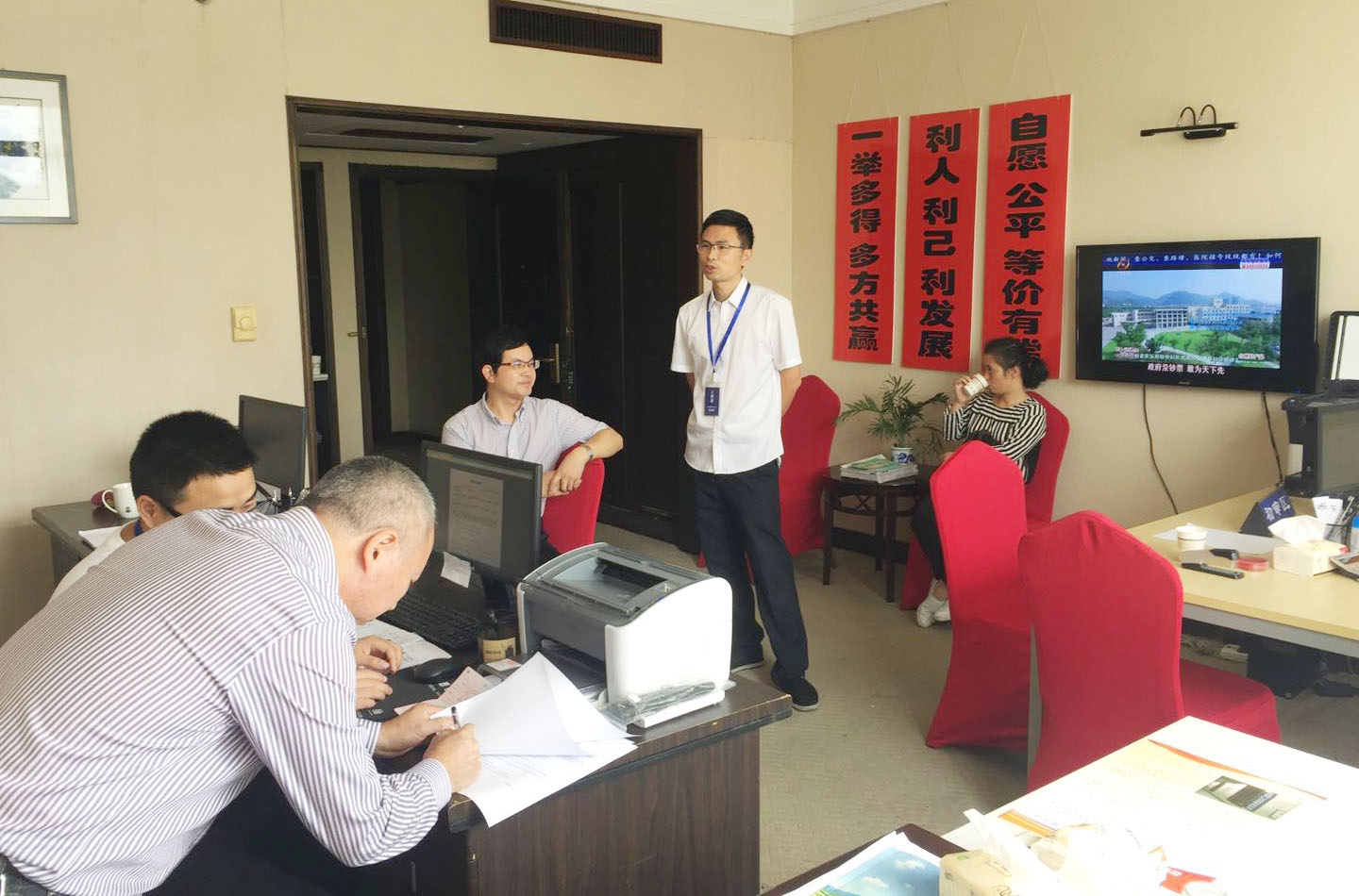 圖為臺州市政府副秘書長蘇元蓬走訪三門股權(quán)收購點 蘇元蓬一邊喝著茶水,一邊和大家拉起了家常。他是三門人,趁著國慶中秋假期回家探望親人,就來三門收購點走走,看望一下大家。 蘇元蓬回顧了市政府與集團公司此次股權(quán)收購的前期準(zhǔn)備與工作動員,并詳細詢問了公司目前的收購情況和三門點的收購進度。工作人員介紹由于前期三門縣政府高度重視此次收購工作,特別是三門縣委常委、常務(wù)副縣長葉邦漢牽頭,召集全縣各機關(guān)單位、鄉(xiāng)鎮(zhèn)街道召開高速股權(quán)收購動員會。在收購過程中,三門電視臺、三門報等媒體宣傳到位,各相關(guān)單位全力配合,縣里老領(lǐng)導(dǎo)帶頭轉(zhuǎn)讓,三門股權(quán)收購工作進展順利。 “三門縣城里,你們有沒有做廣告宣傳?股東們是不是都知道了?”蘇元蓬問道。“有的,有的,這是我們公司準(zhǔn)備的公告海報。”工作人員林玲遞過一份海報。“我們打算節(jié)后張貼。”當(dāng)?shù)弥T收購點在對前來辦理轉(zhuǎn)讓的股東隨訪和電話問詢中,已確認大多數(shù)股東都已知曉股權(quán)收購這個消息后,蘇元蓬大加贊賞。 蘇元蓬強調(diào),要強調(diào)此次股權(quán)收購對于企業(yè)轉(zhuǎn)型升級的重要意義,現(xiàn)場工作人員要耐心解釋,深入宣傳,特別是那些已經(jīng)辦理轉(zhuǎn)讓的股東,由他們口口相傳會更有說服力。對于國企法人股東,一定要借助政府的力量,由臺州市國資委與當(dāng)?shù)貒Y局共同推動,促成國企法人盡快轉(zhuǎn)讓,早日完成股權(quán)收購任務(wù)。 邵全森