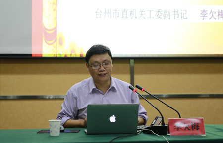 圖為市直機(jī)關(guān)工委副書記李欠梅作題為《邁向新時代開啟新征程續(xù)寫新篇章》的專題解讀和輔導(dǎo)報(bào)告