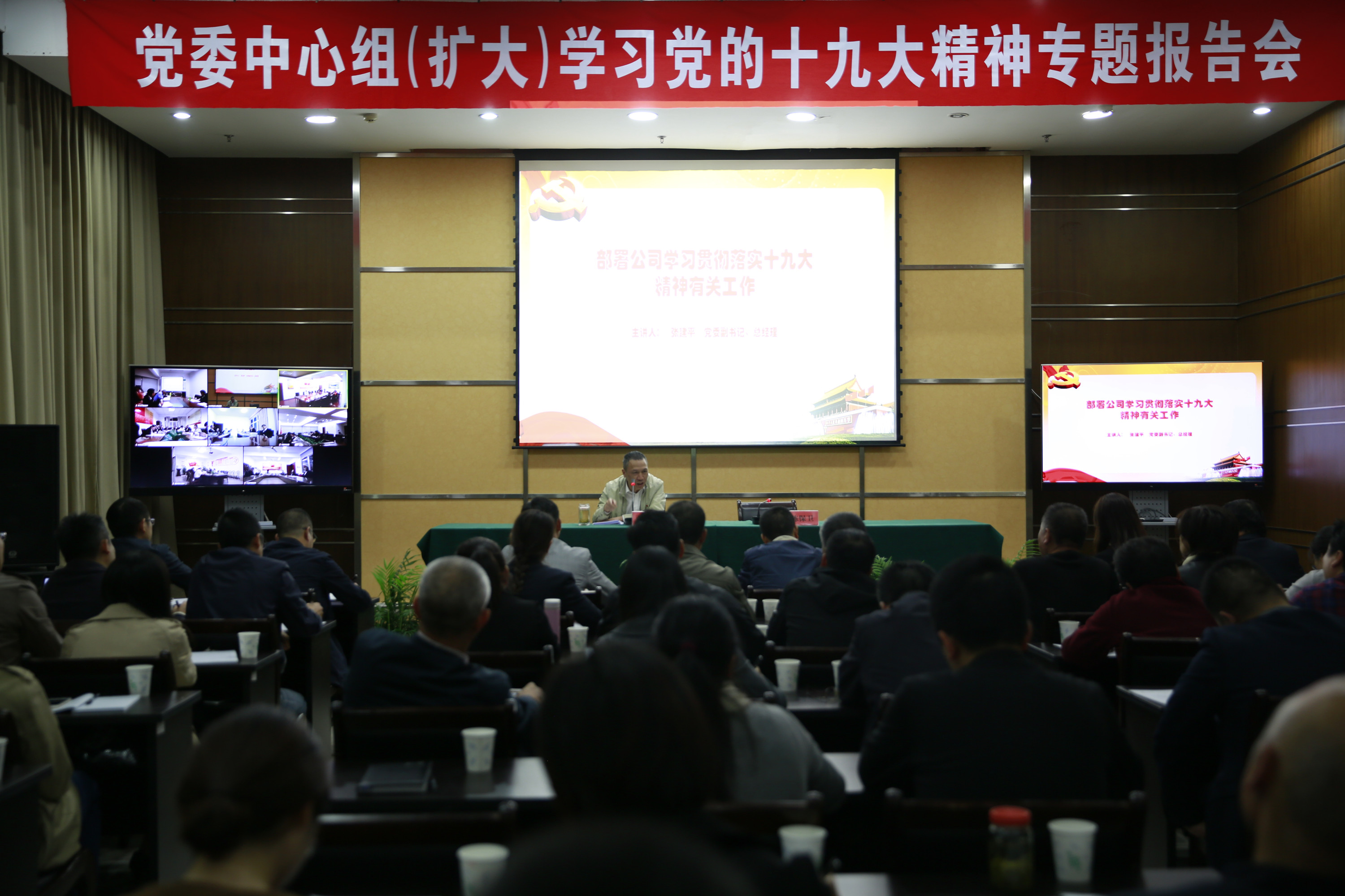 為了深入學(xué)習(xí)好、宣傳好、領(lǐng)悟好、落實(shí)好黨的十九大精神和習(xí)近平新時代中國特色社會主義思想,10月30日晚上,集團(tuán)利用周一晚上的時間在天和大廈26樓召開了黨委中心組(擴(kuò)大)學(xué)習(xí)會,特別邀請了市直機(jī)關(guān)工委副書記李欠梅做了題為《邁向新時代開啟新征程續(xù)寫新篇章》的專題解讀和輔導(dǎo)報(bào)告。集團(tuán)黨委副書記、總經(jīng)理張建平對學(xué)習(xí)領(lǐng)會落實(shí)黨的十九大精神進(jìn)行了全面部署,要求在集團(tuán)上下迅速掀起學(xué)習(xí)熱潮,廣大員工要立足崗位加油,推動集團(tuán)實(shí)現(xiàn)“浴火重生謀新篇”的目標(biāo)。大樓全體員工參加現(xiàn)場會議,各所、中心的非當(dāng)班員工通過遠(yuǎn)程視頻會議系統(tǒng)同步收看輔導(dǎo)講座。