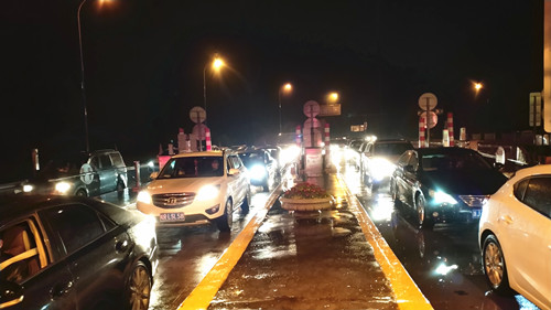 圖為免費(fèi)時(shí)段結(jié)束后的車(chē)流