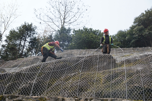“錨桿施工、掛網(wǎng)制作安裝、柔性防護(hù)網(wǎng)編制對技術(shù)性和安全性都有極高的要求,我們都嚴(yán)格按照施工圖紙及規(guī)范要求施工。”工程負(fù)責(zé)人楊曉東介紹。