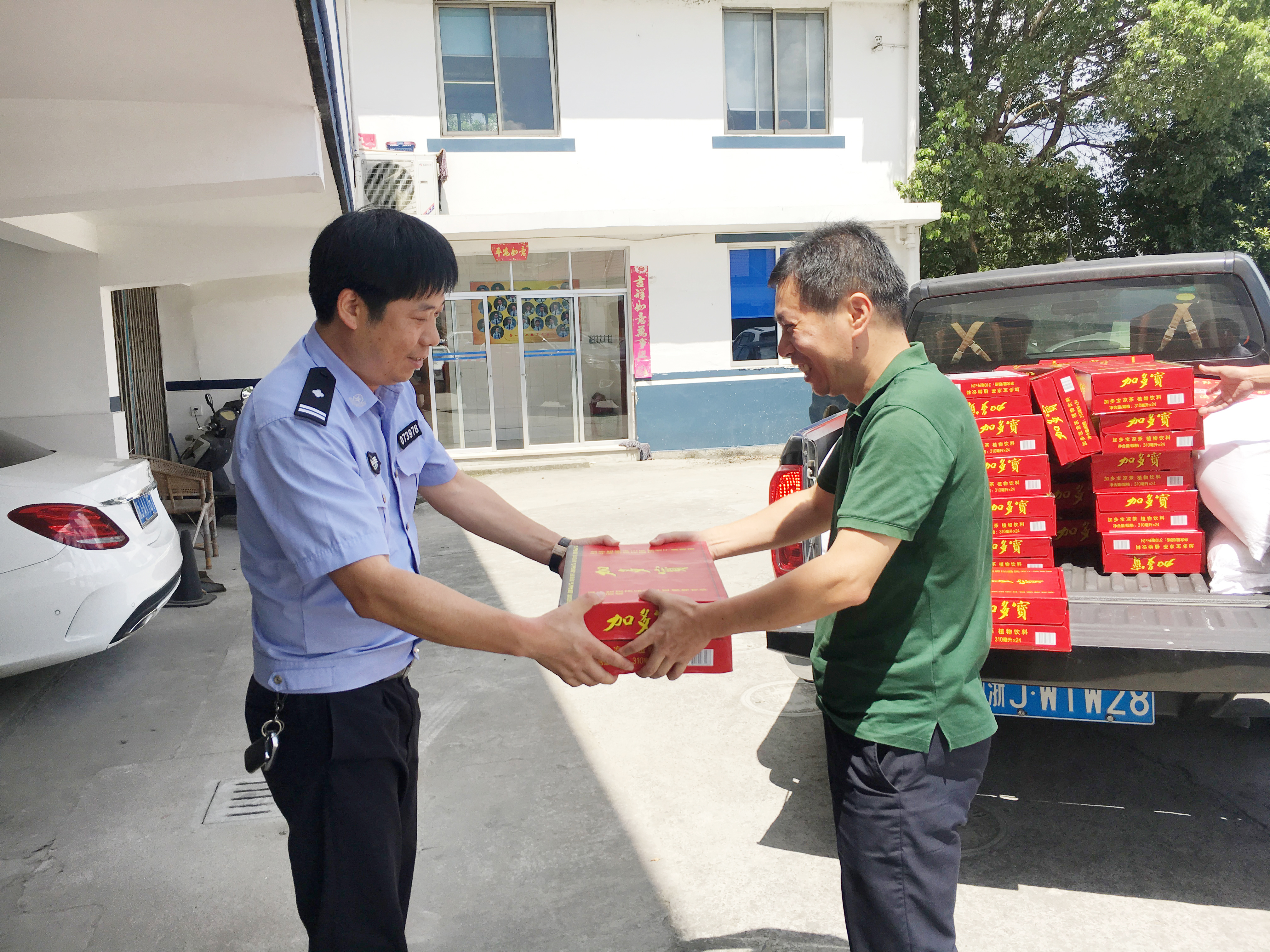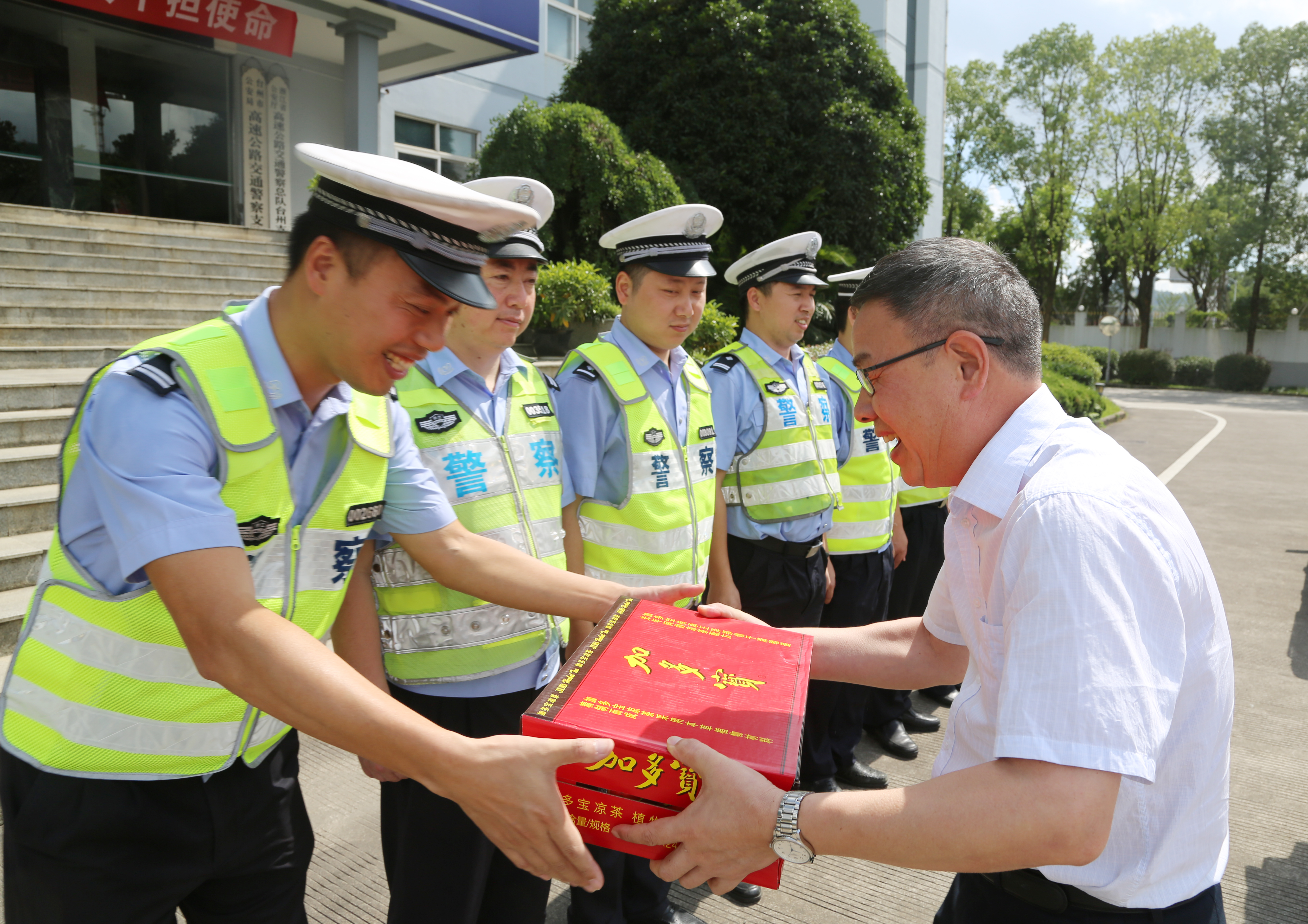 陳文波一行首先來到臺州高速公路交警總隊臺州支隊和高速路政的駐地,向他們送上了消暑物資,對他們一直以來有力維護高速公路秩序,保障本路段有序運營及高溫下堅守一線工作表示慰問和感謝,也請他們繼續支持公司工作,確保高速公路安全暢通。