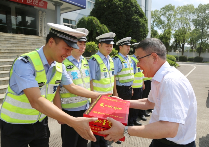與此同時,集團總工程師江輝帶領工程部及收費所相關人員到院橋派出所和交警隊開展“送清涼”活動。江輝代表臺州高速集團對當地派出所和交警隊的履職盡責、通力協作表示衷心感謝,并叮囑他們在高溫天氣要做好防暑降溫工作。