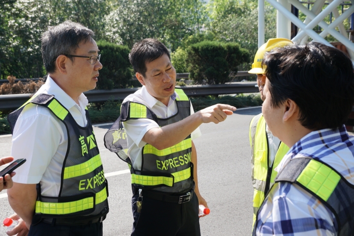 臺州高速完成首個龍門架吊裝 取消省界收費站工作邁出堅實一步 9月7日上午,首個自由流主線虛擬收費站龍門架,在甬臺溫高速公路臺州段溫州方向主線K1668+200M處現(xiàn)場完成吊裝,標志著取消省界收費站工作邁出了堅實的一步。集團董事長、總經(jīng)理陳文波在吊裝施工現(xiàn)場視察指導工作。集團總工程師江輝,高速交警、施工單位、監(jiān)理單位、工程部等人員陪同。