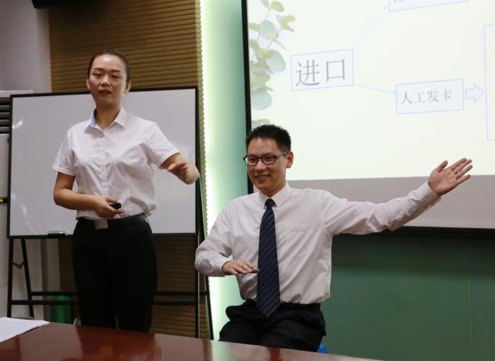 隨后,臨海南收費所文明服務培訓師徐蘇蘇通過PPT,以輕松風趣的講課風格,給班子領(lǐng)導們上了一堂儀容儀表講解、操作流程演示、文明服務動作以及心理建設(shè)的課,并通過員工真人示范文明服務中坐姿、眼神、聲音等練習,令在場的受訓者耳目一新。