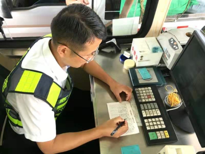 “平時看文明服務錄像的時候感覺收費員工作很簡單,等到自己操作的時候真的是雙手不聽腦子使喚啊......”正在溫嶺西收費所3號崗亭收費的副總經(jīng)理章海峰一邊自言自語著“體驗感”,一邊擦了下額頭上的虛汗。