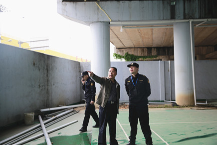 圖為公司安保部負責人與高速路政人員在現場指導拆除作業