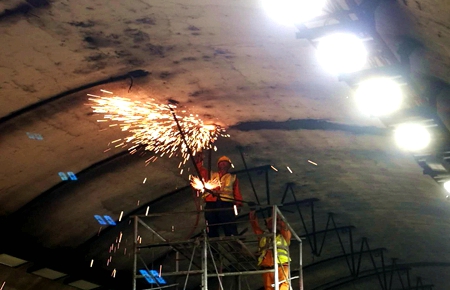 隨著封道完成,施工正式啟動,“我們施工人員克服晝夜顛倒生理問題,每晚工作近10個小時,而且邊施工邊檢查,發(fā)現(xiàn)問題及時整改,才能既有質(zhì)量還有進(jìn)度。”現(xiàn)場負(fù)責(zé)人王工感慨道。