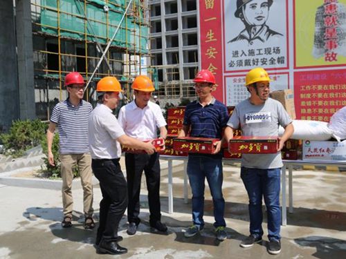 8月10日上午,集團副總經理羅小將和集團總工程師江輝分別在總經理助理李軍鋒和工程部負責人、市政公司負責人的陪同下,到椒江文鼎苑項目工地和黃巖、路橋、溫嶺等地方交警駐地,慰問廣大施工人員和一線執勤民警。