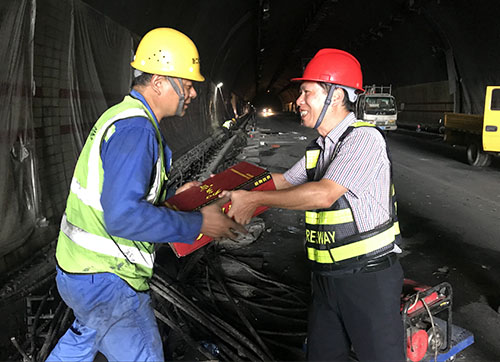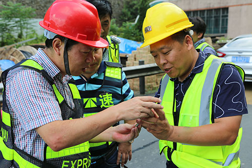 圖為集團總工程師江輝了解施工中出現(xiàn)的情況 江輝還聽取了施工進度的情況匯報。江輝表示隧道施工是一項艱苦的工作,施工人員在惡劣的環(huán)境中工作,工種危險系數(shù)高、體力消耗特別大,工程部和施工方要多關(guān)心一線人員的生產(chǎn)生活。江輝要求施工方要加強對安全和人員管理,制定切實有效的施工技術(shù)安排,時刻預(yù)防隧道塌方,地下水涌和瓦斯氣體等突發(fā)狀況,消除各種惡劣環(huán)境因素的影響,確保大溪嶺-湖霧嶺隧道機電改造項目成功收官。
