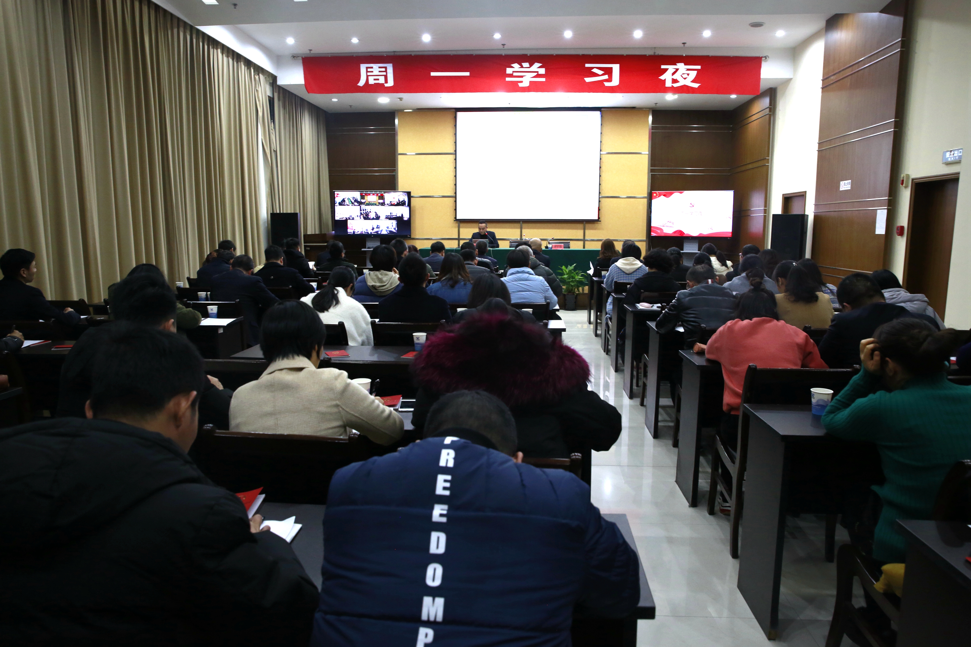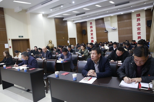 圖為參加學習的黨員干部 活動由總經理助理李軍鋒主持,集團大樓全體員工現場參加學習,各所、中心、子公司通過視頻會議系統學習。 馮曉潔