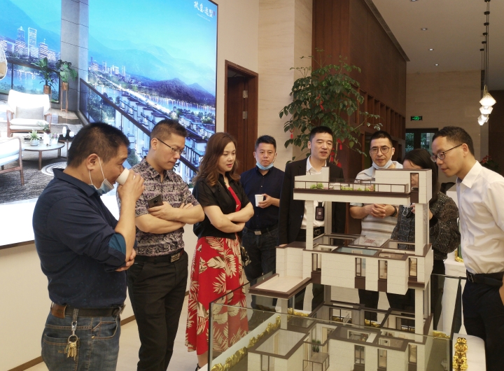 圖為陳文波對照圖紙了解樓盤情況 在銷售展廳樓盤沙盤前,陳文波聽取了高速房產(chǎn)(集團(tuán))公司負(fù)責(zé)人關(guān)于玖璽逸墅項(xiàng)目銷售計(jì)劃、認(rèn)籌客戶等情況匯報(bào)。他對前期房產(chǎn)公司的辛苦付出給予充分肯定,要求大家認(rèn)真服務(wù)好每一個(gè)來訪客戶,彰顯出國企品質(zhì),全力做好銷售工作。 當(dāng)天,銷售展廳樓內(nèi),陸陸續(xù)續(xù)有客戶進(jìn)出,“我很早就看中這個(gè)樓盤了,不僅位置好,而且采光好、通風(fēng)好,居住在這里一定非常舒服。”一名準(zhǔn)客戶張女士夸贊道,今天她特意前來交付認(rèn)籌金。  圖為客戶在疊墅沙盤前參觀