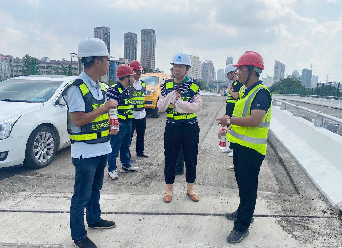 臺州市交通工程質量安全監(jiān)督站一行督查公司路段施工 8月21日,臺州市交通工程質量安全監(jiān)督站副站長柯善剛,副總工程師羅衛(wèi)萍一行到公司所轄路段施工現(xiàn)場督察,查看施工質量、安全以及進展情況。工程養(yǎng)護部、施工單位、監(jiān)理單位等人員陪同。