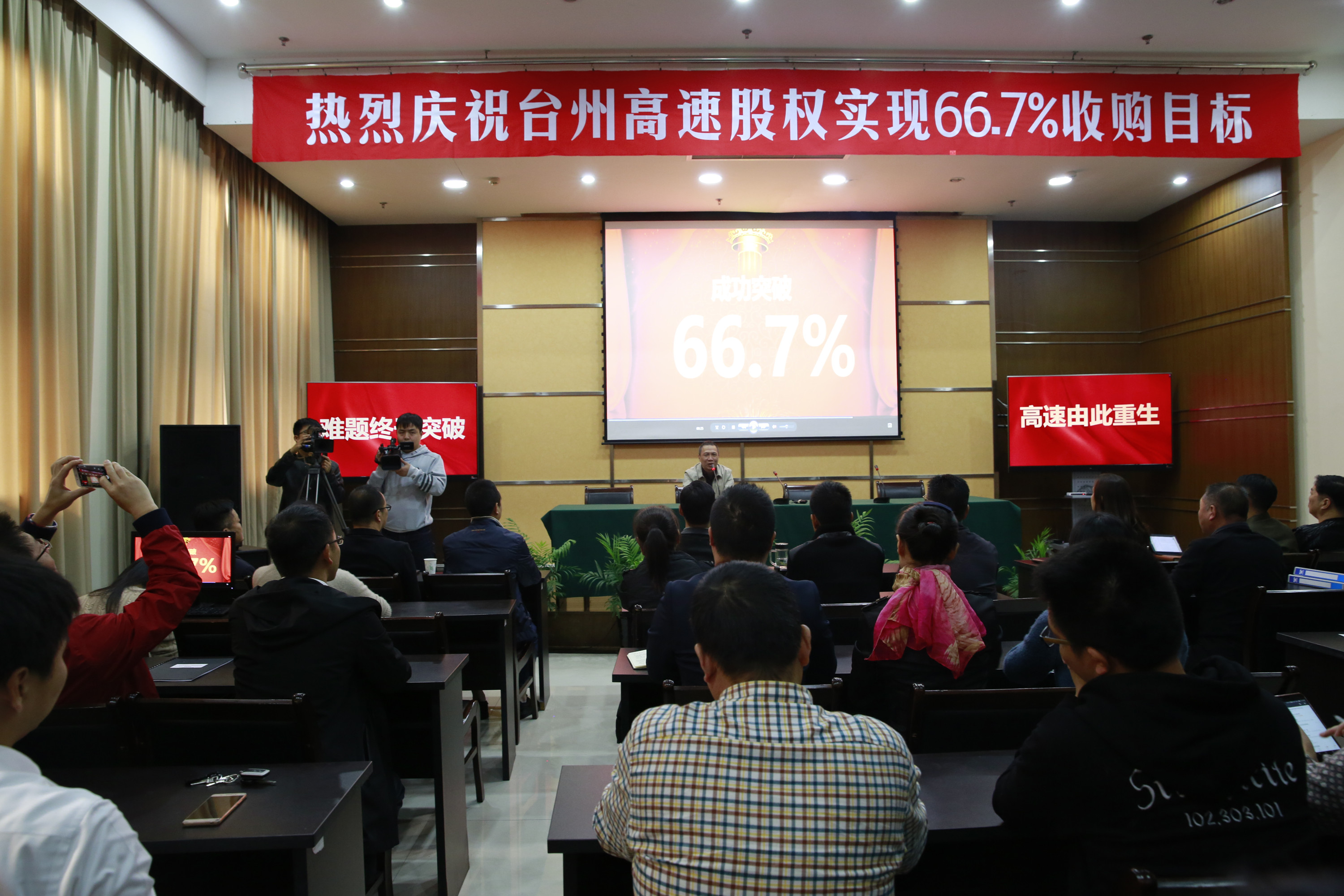 臺州高速股權集中和優化工作領導小組辦公室主任、臺州高速集團總經理張建平鄭重地宣布:“至此,全市共完成臺州高速股權轉讓6947萬股,臺州市屬國企及黃巖財務開發公司合計持股數1.441億股,完成了66.7%的預定收購目標?!?/span>