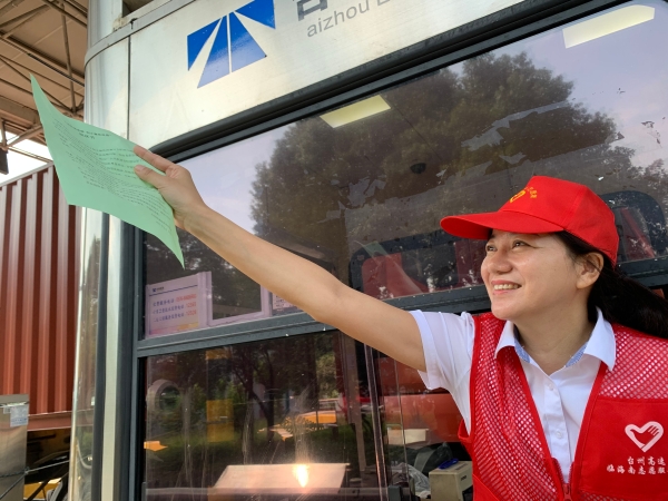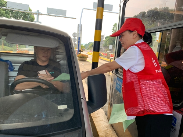 910上午臨海南收費(fèi)所志愿者身穿耀眼的紅馬甲,在車道出入口向過往司乘人員發(fā)放“弘揚(yáng)傳統(tǒng)美德制止餐飲浪費(fèi)”倡議書,號(hào)召?gòu)V大司機(jī)從自己做起、從現(xiàn)在做起、從點(diǎn)滴做起,自覺抵制餐飲浪費(fèi),積極號(hào)召身邊的人傳承勤儉節(jié)約的良好家風(fēng),向全社會(huì)營(yíng)造“浪費(fèi)可恥、節(jié)約為榮”的深厚氛圍。