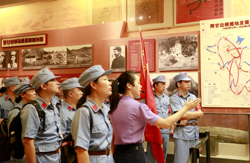 圖為黨員參觀延安革命紀念館 接下來的學習參觀行程安排得非常緊湊,大家冒酷暑頂烈日,一路顛簸,從楊家?guī)X到梁家河再到南泥灣,低矮簡陋的窖洞里,一代偉人的足跡就在眼前,歷史的回音縈繞耳邊,蕩氣回腸的故事撼人心魄;革命紀念館里,面對一張張圖片和一件件歷史文物,大家駐足觀看,思緒不由自主地回到那戰(zhàn)火紛飛的抗日戰(zhàn)爭和解放戰(zhàn)爭,回到艱苦樸素和激情燃燒的延安時代。在解說員的帶領(lǐng)下,所到之處,大家認真聽講解,看到振奮人心的畫面時,大家紛紛拿出手機拍下來留作紀念。 此次延安之行,是一次生動而深入的紅色尋根之旅,更是一次堅定理想信念的精神之旅。收獲滿滿的黨員們掩不住內(nèi)心的喜悅,一路上交流學習體會、分享學習心得。大家紛紛表示,一定要把延安精神貫穿到日常工作中去。此次的延安之行,也將注定成為這29位黨員們一生最難忘的記憶。 鄭瑛芝