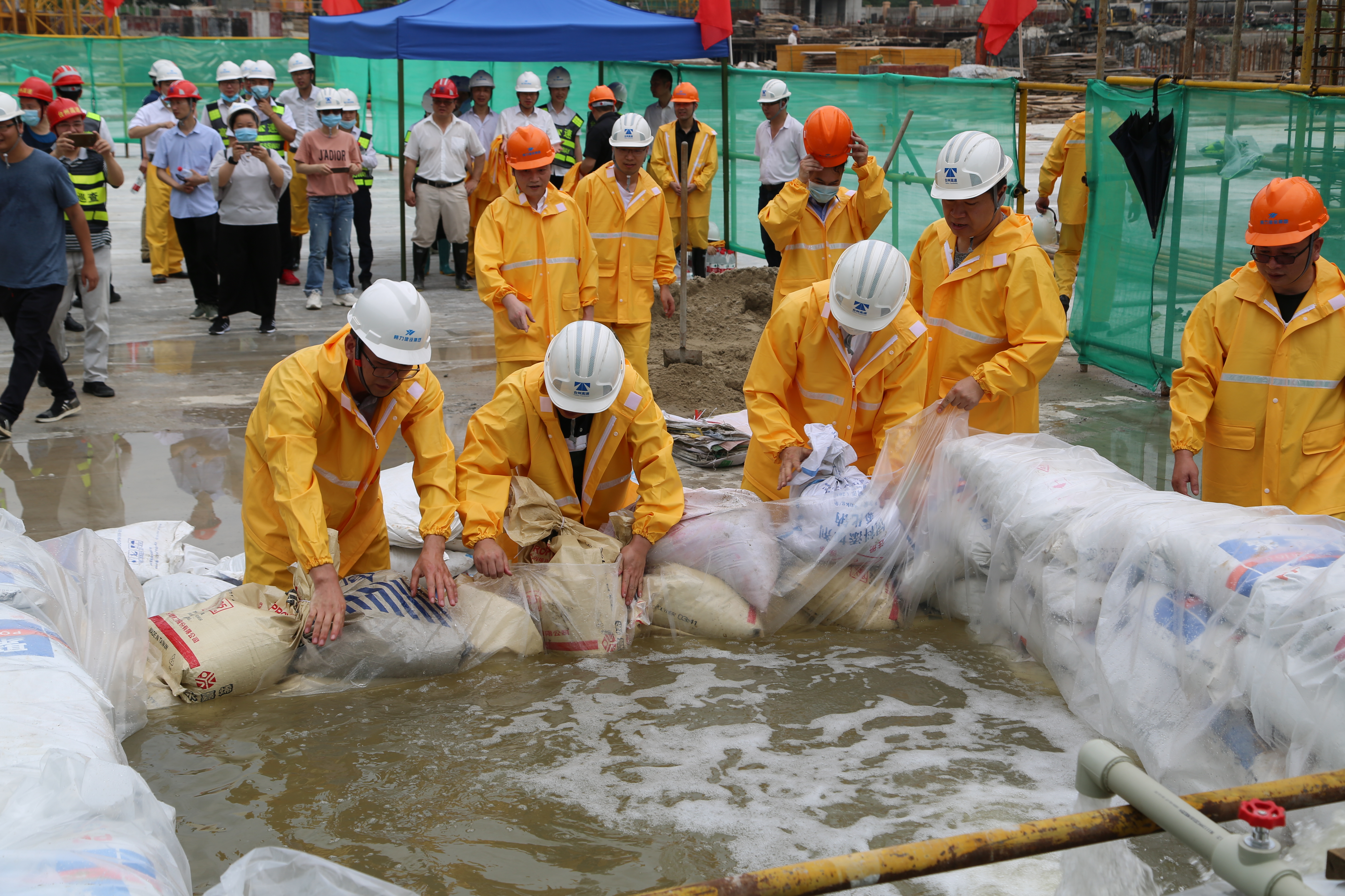 圖為抗洪搶險演練現場 “洪水來了,準備搶險!”隨著集團安全總監項同富的一聲令下,參與演練的兩組隊伍立刻開展抗洪搶險行動,各隊伍成員分工明確,動作迅速,演練的緊張氣氛使得在場觀摩的人員都感同實戰,真實的模擬演練切實提高了每一位參演人員防汛防臺的應急能力。