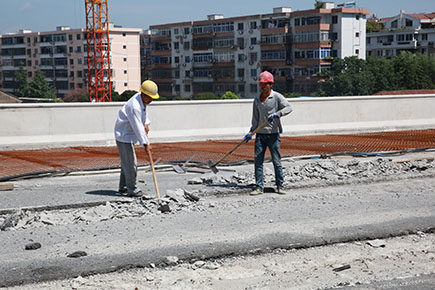 鐘志偉是8#立交項(xiàng)目部的現(xiàn)場(chǎng)管理人員。“目前正在施工的是8#立交主線橋的橋面鋪裝層,這個(gè)班組是月初進(jìn)場(chǎng),按照預(yù)計(jì)工期,月底前必須完成所有橋面鋪裝。”鐘志偉說,時(shí)間緊、任務(wù)重,三伏天也要連軸轉(zhuǎn)。